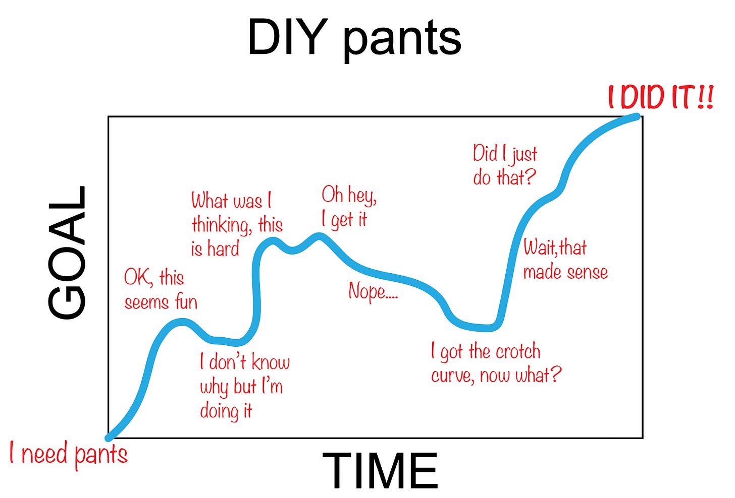 My aims for the group are several. First to bring clarity about my approach in general, particularly when it comes to customizing that all-important crotch curve. Second, I hope for participants to gain confidence, be empowered to make any type of pant whether it is a vintage pattern that only comes in one size for the latest release from a contemporary pattern maker. Third is that by the time we finish, it will be obvious to participants how the principles of body neutral fitting acquired through making pants can be readily applied to other types of garments. The framework2 differs but the principles apply universally.